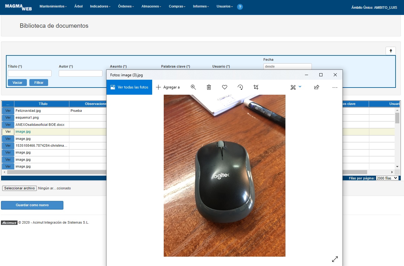 MAGMAWEB permite asociar cualquier tipo de documento a casi cualquier elemento (activos, repuestos, uauarios, OM's, etc). Los guarda en la base de dats y permite recuperarlos posteriormente. Usted debe proveer la aplicación que sea capas de utilizarlos.r el proceso en caso necesario.